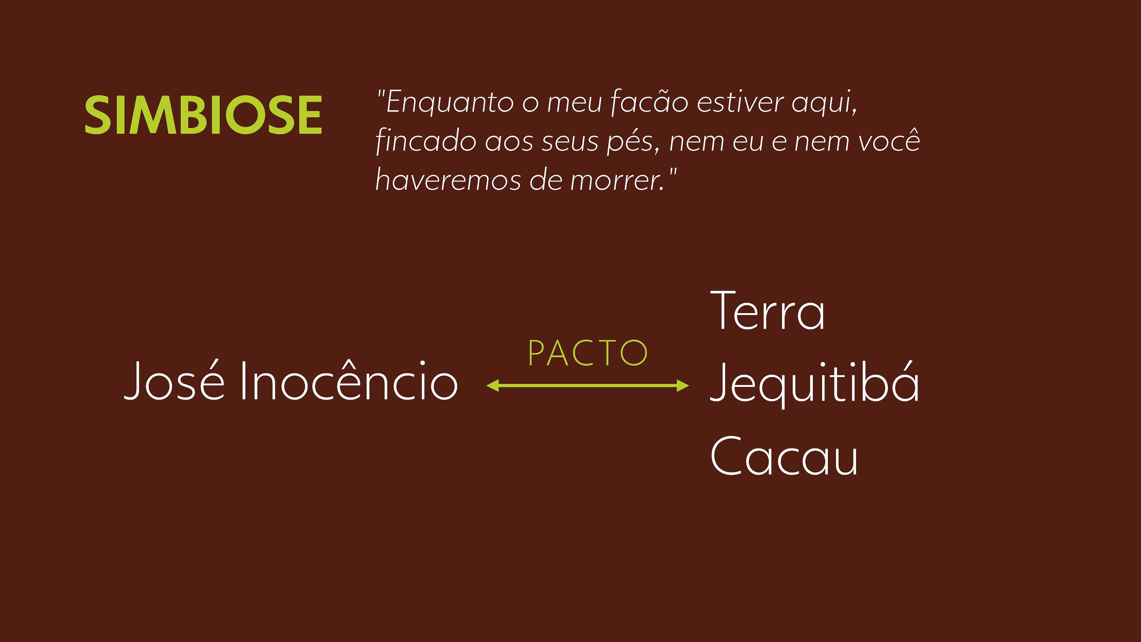 Dois conceitos principais estão na abertura: a simbiose entre o homem e a natureza e a ciclicidade da vida. O pacto de José Inocêncio com o Jequitibá, ao fincar o facão aos pés dessa árvore ancestral, vincula sua alma à terra. A abertura começa e termina no mesmo lugar, representando essa ligação. Assim como a trama, que fala de legado entre pai e filho, de volta às raízes em um ciclo que não se encerra.